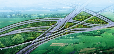 南四環(huán)主線依次下穿規(guī)劃鄭萬(wàn)客專及鄭西貫通線,由地面道路、下穿地道和高架橋組成。高架橋部分全長(zhǎng)771.5米,為雙向六車道,設(shè)計(jì)時(shí)速為80千米。