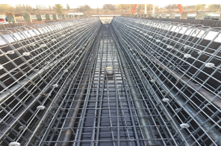 在箱梁的預(yù)制生產(chǎn)過程中,8標(biāo)項目駐廠技術(shù)人員加強箱梁質(zhì)量控制,加強生產(chǎn)安全控制:(1)熟悉施工圖紙、相關(guān)技術(shù)規(guī)范和操作規(guī)程,了解設(shè)計要求及細部、節(jié)點做法,弄清有關(guān)技術(shù)資料對工程質(zhì)量的要求;(2)熟悉施工組織設(shè)計及有關(guān)技術(shù)文件對施工順序、施工方法、技術(shù)措施、施工進度的要求;(3)弄清完成施工任務(wù)中的薄弱環(huán)節(jié)和關(guān)鍵部位,并且加強檢查。(4)采取措施,對成品預(yù)制梁加強保護:近期夜晚施工環(huán)境溫度較低,現(xiàn)場已采用保溫布整體覆蓋,進行蒸汽養(yǎng)生,確保梁體初期強度有效提升;(5)箱梁張拉過程中,技術(shù)人員全過程監(jiān)督,并且在梁端采取有效保護、防護措施,注重張拉過程質(zhì)量安全控制;廠區(qū)移梁過程中要求必須有專人指揮,操作過程中,嚴(yán)格執(zhí)行‘十不吊’,且始終做到穩(wěn)起、穩(wěn)行、穩(wěn)落,加強移梁過程安全控制。