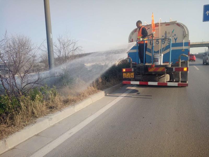 強(qiáng)化綠化管理,打造綠色環(huán)境。抓住綠化補(bǔ)栽的有利季節(jié),對(duì)管養(yǎng)線路的綠化苗木缺失進(jìn)行補(bǔ)栽,并對(duì)綠化帶進(jìn)行澆灌和清洗,保障綠化效果良好。同時(shí),對(duì)干線公路兩側(cè)遮擋急彎、陡坡等警示標(biāo)志的樹枝及枯枝、與高壓線交叉的樹枝進(jìn)行修剪,以解決路樹給交通安全帶來(lái)的隱患。