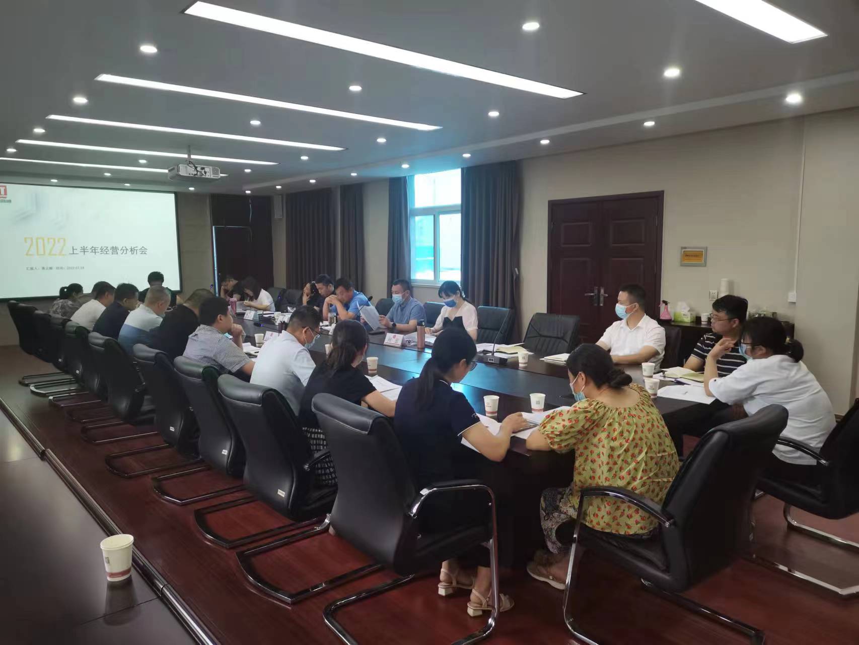 7月20日上午,總工辦在公司三樓會議室組織召開2022年上半年經營分析會。路通公司總經理郭孟濤出席會議并講話,會議由公司總經理助理、總工辦主任李運富主持,總工辦、財務部、審計部、工程部,各分(子)公司經理及相關人員等30余人參加會議。