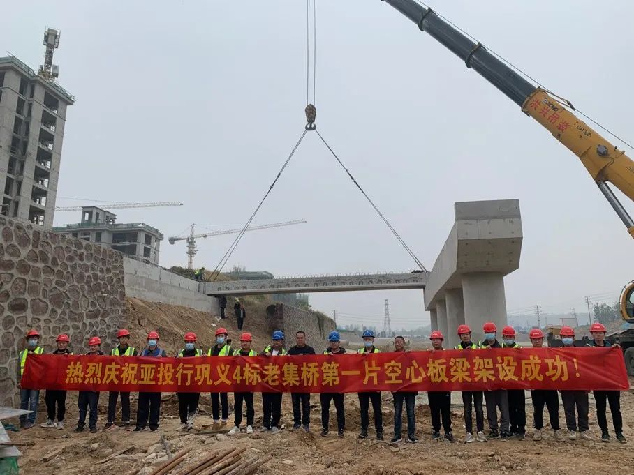 隨著鞭炮響起,市農(nóng)村公路災(zāi)后恢復(fù)重建項(xiàng)目鞏義米河4標(biāo)老集橋首片空心板梁正式開始架設(shè)。