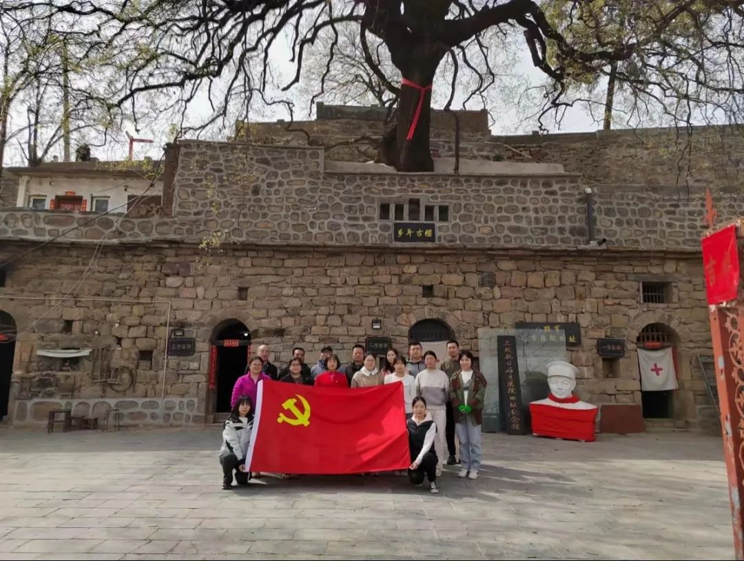 體驗了勞動的喜悅后,大家又懷著崇敬的心情來到環(huán)翠峪八路軍后方醫(yī)院舊址參觀學(xué)習(xí),緬懷革命先烈,接受革命傳統(tǒng)教育。八路軍后方醫(yī)院舊址坐落在臥龍臺寨正下方的三墳村里,隱藏在一株萬年古橿覆蓋下的三孔簡陋的窯洞里。抗戰(zhàn)時期,這里屬于豫西抗戰(zhàn)革命老區(qū)。1944年4月,皮定鈞司令員和徐子榮政委率領(lǐng)八路軍豫西抗日先遣隊來到這里,與敵人展開激烈的戰(zhàn)斗,并取得最終勝利。參觀過程中,全體黨員、入黨積極分子認真觀看著歷史文獻資料,陳列的革命展品,在皮定鈞司令員半身像前駐足、靜默,感受著革命老區(qū)、軍民一家親的熱血深情。